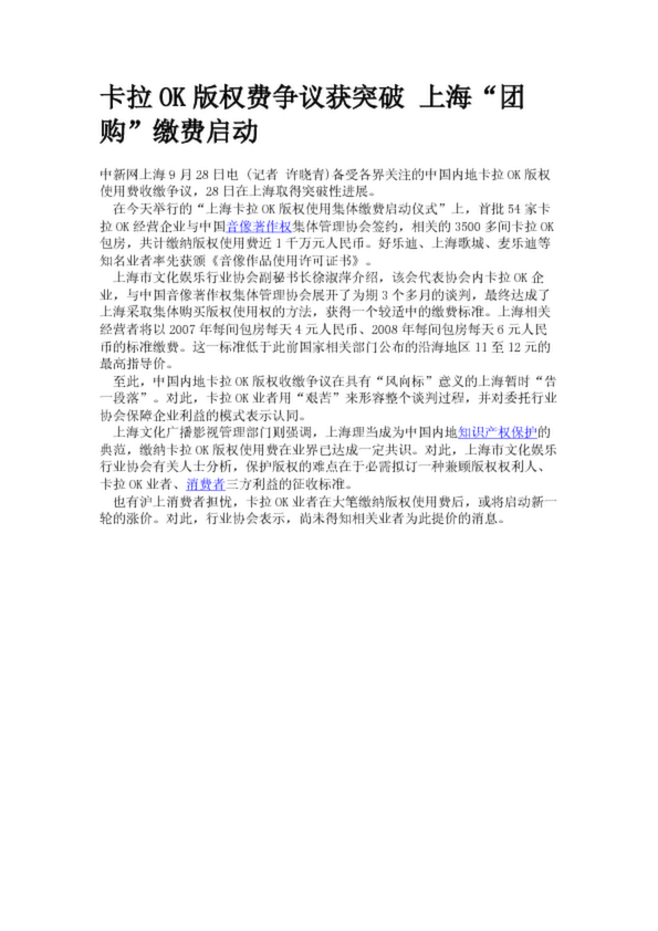 卡拉OK版權費爭議獲突破 上�!皥F購”繳費啟動