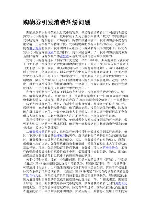 購(gòu)物券引發(fā)消費(fèi)糾紛問(wèn)題