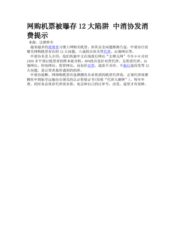 網(wǎng)購機(jī)票被曝存12大陷阱 中消協(xié)發(fā)消費提示