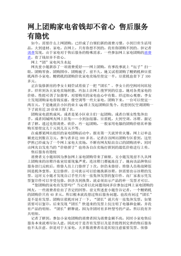 網(wǎng)上團購家電省錢卻不省心 售后服務(wù)有隱憂