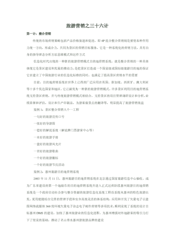 為加快旅游國際化步伐,把張家界建設成為世界旅游目的地,特提出以下三十六計對策措施供決策部門參考。 第一計: 傳統(tǒng)的市場營銷策略包括產(chǎn)品價格渠道和促進,即 4P 組合整合 營銷則是要使各種作用力統(tǒng)一方向,形成合力,共同為景區(qū)的...