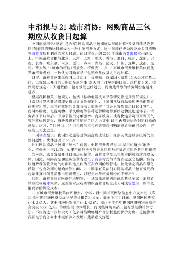 中消報與21城市消協(xié):網(wǎng)購商品三包期應(yīng)從收貨日起算