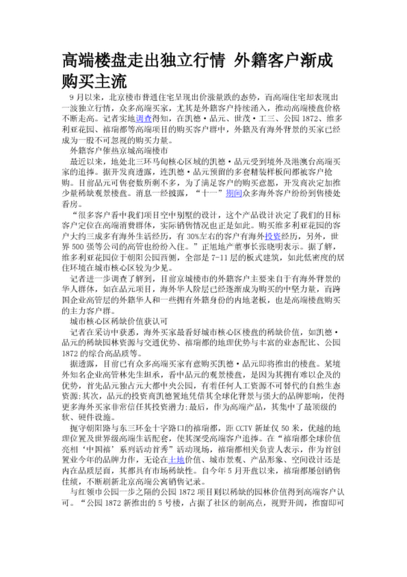 高端樓盤(pán)走出獨(dú)立行情 外籍客戶(hù)漸成購(gòu)買(mǎi)主流