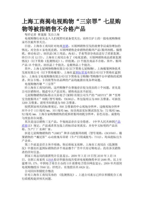 上海工商揭電視購(gòu)物“三宗罪”七星購(gòu)物等被指銷(xiāo)售不合格產(chǎn)品