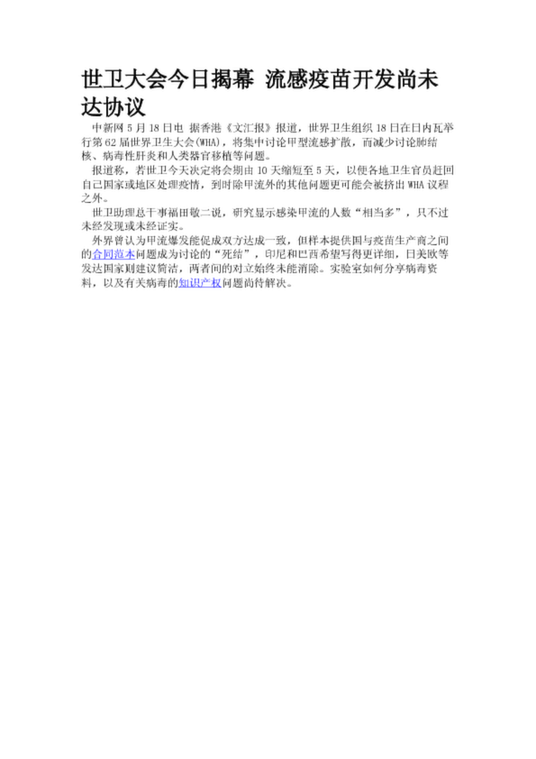 世衛(wèi)大會今日揭幕 流感疫苗開發(fā)尚未達協(xié)議