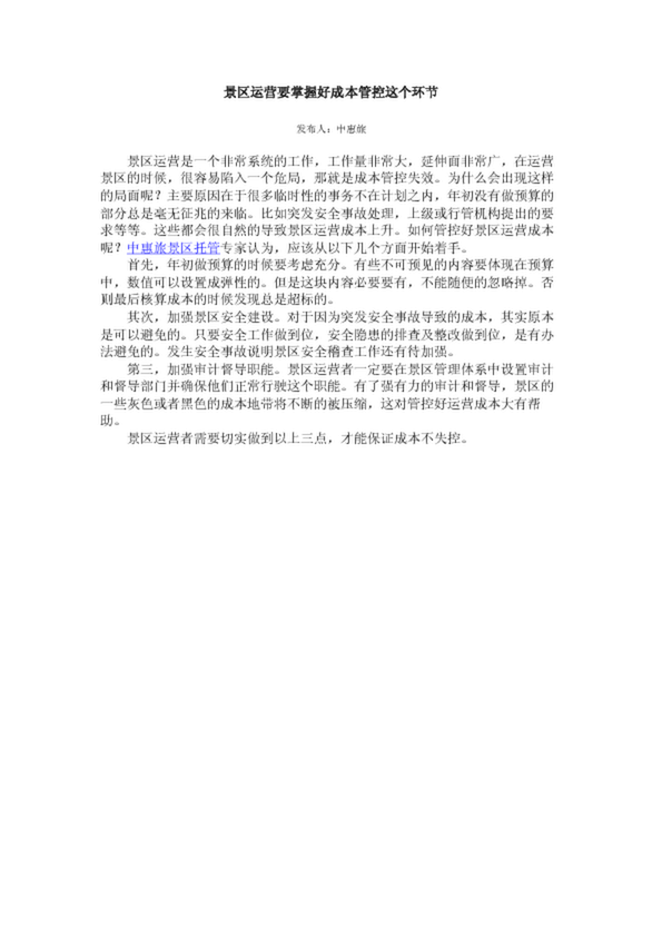 景區(qū)運(yùn)營(yíng)要掌握好成本管控這個(gè)環(huán)節(jié)