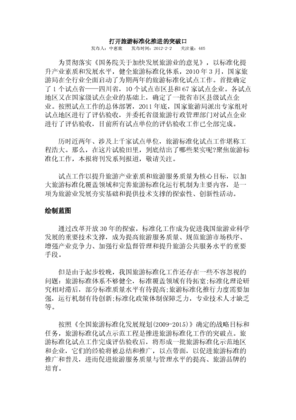 打開(kāi)旅游標(biāo)準(zhǔn)化推進(jìn)的突破口