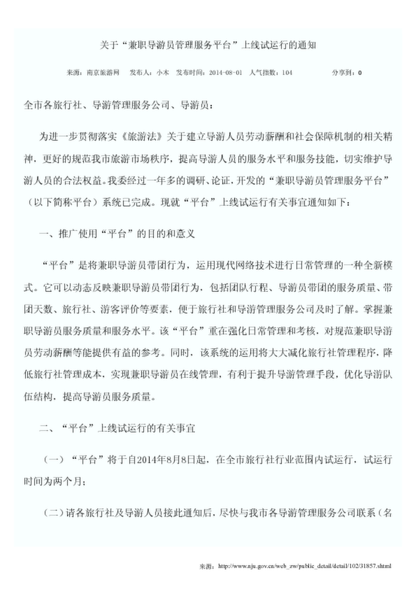 關(guān)于“兼職導(dǎo)游員管理服務(wù)平臺(tái)”上線(xiàn)試運(yùn)行的通知(19.00KB)