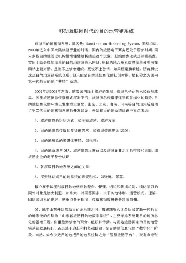 移動互聯(lián)網(wǎng)時代的目的地營銷系統(tǒng)