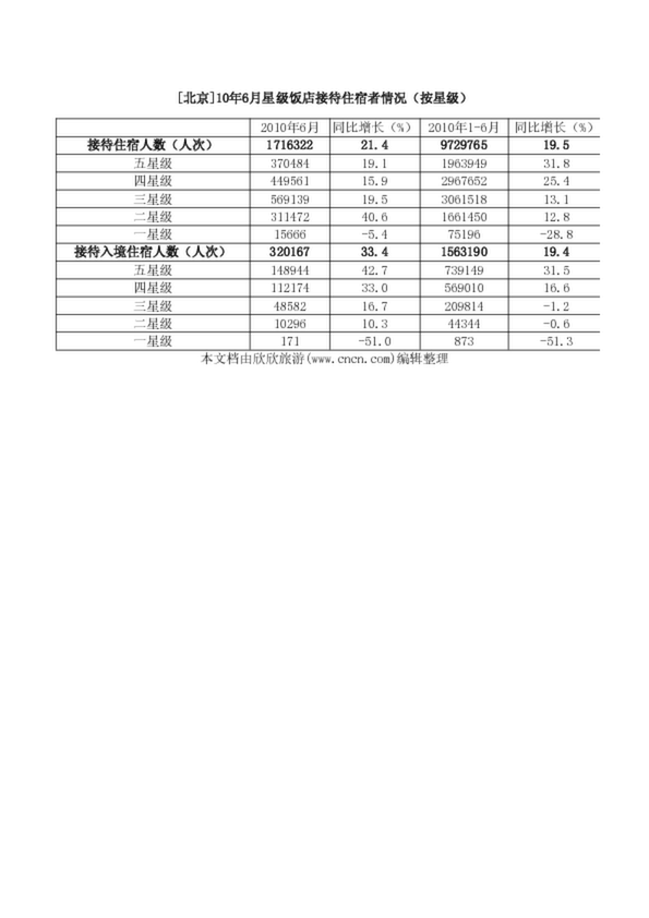 [北京]10年6月星級飯店接待住宿者情況(按星級)(58.05KB)