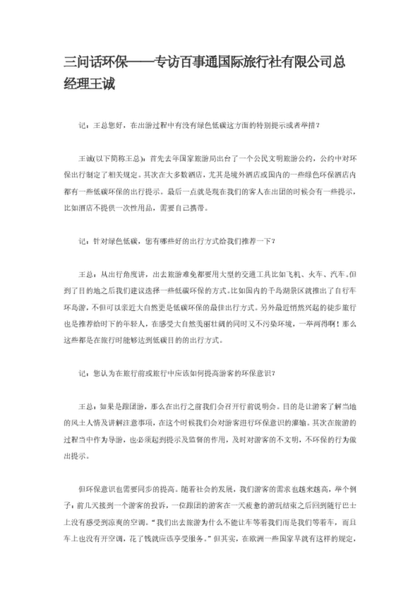 三問話環(huán)�!獙TL百事通國際旅行社有限公司總經(jīng)理王誠