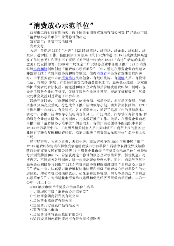 “消費放心示范單位”