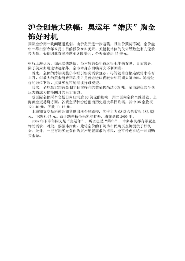 滬金創(chuàng)最大跌幅:奧運(yùn)年“婚慶”購(gòu)金飾好時(shí)機(jī)(17.58KB)