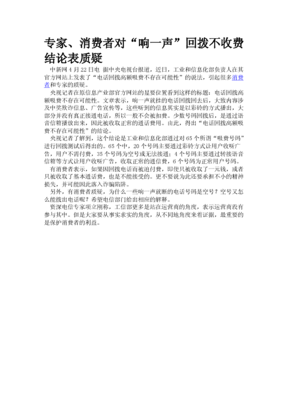 專家、消費(fèi)者對(duì)“響一聲”回?fù)懿皇召M(fèi)結(jié)論表質(zhì)疑